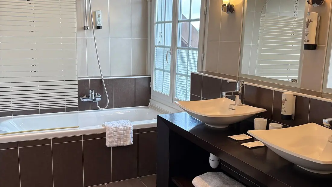 Descubra nuestras 15 habitaciones con carácter, cada una con su propio ambiente, equipadas con todas las comodidades: cuarto de baño, secador de pelo, wifi, televisión conectada, bandeja de cortesía, aire acondicionado.